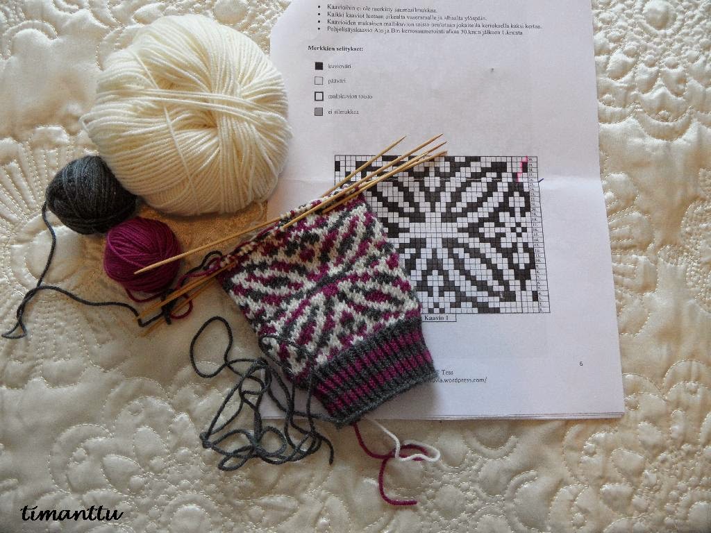 Isomman pojan tossutkin on jo neulottu, mutta pyykkikonetta vailla. Vielä en saanut kaikkia huopasia tuhottua, mutta isäntä ei kuulemma tossuja tarvitse, joten loput langat jää edelleen odottamaan innostusta.